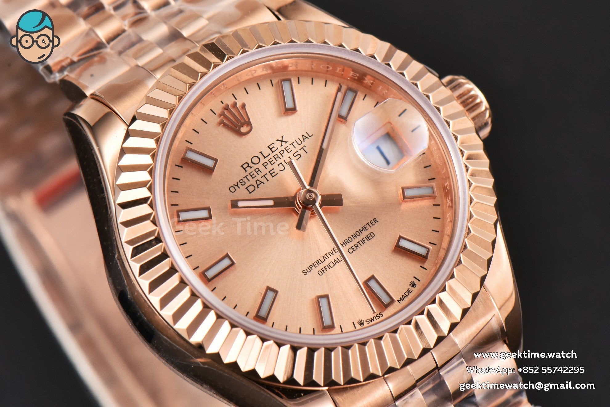 DateJust 28MM Ladies WF RG RG Dial Lume Marker Jubilee Bracelet A2236