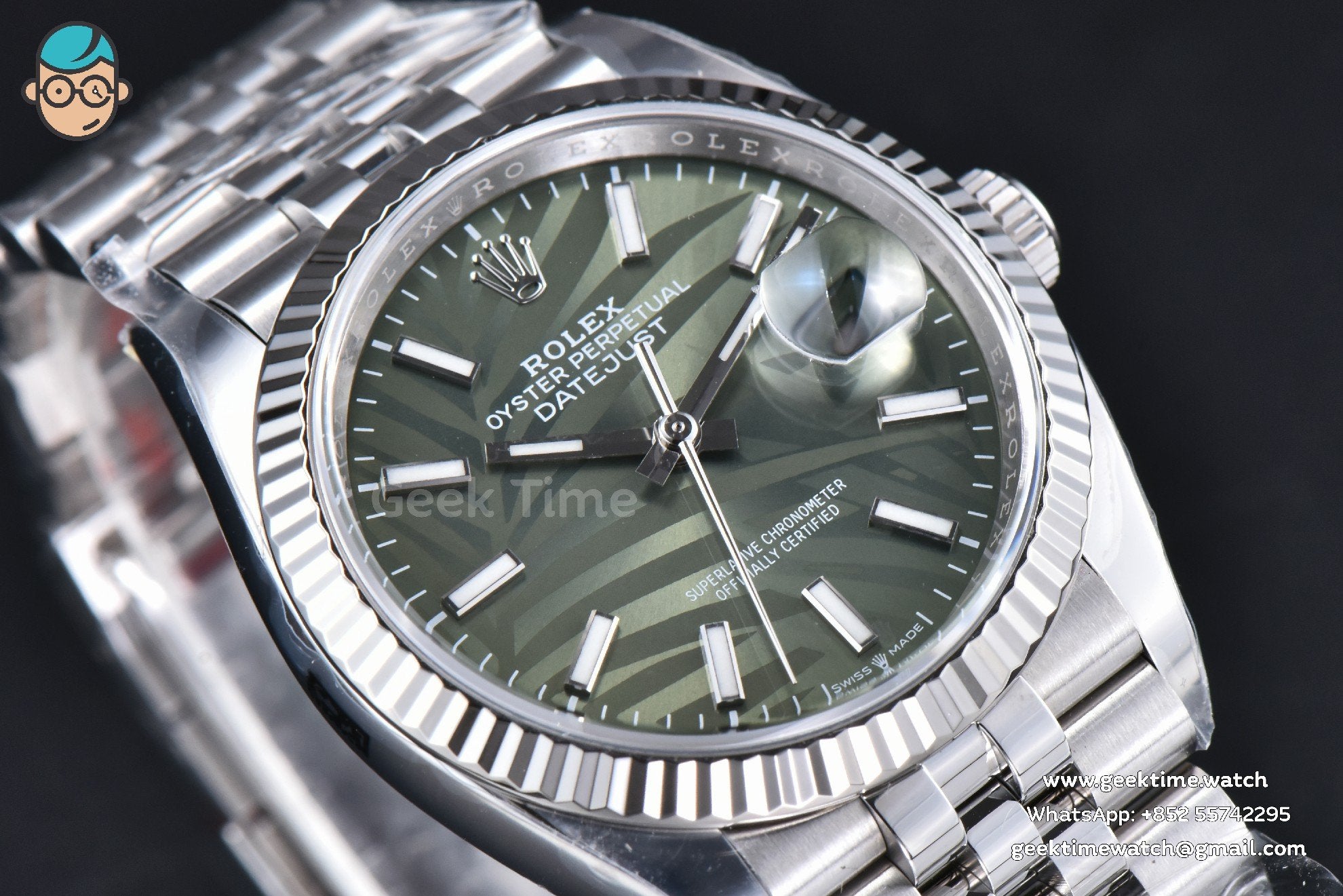 DateJust 36MM 126234 Clean CF Green Plam Dial Jubilee Bracelet VR3235