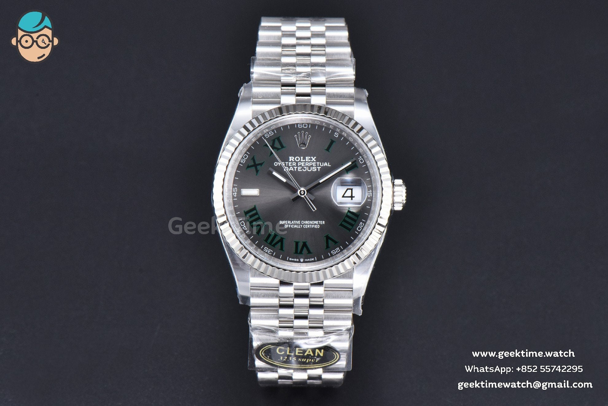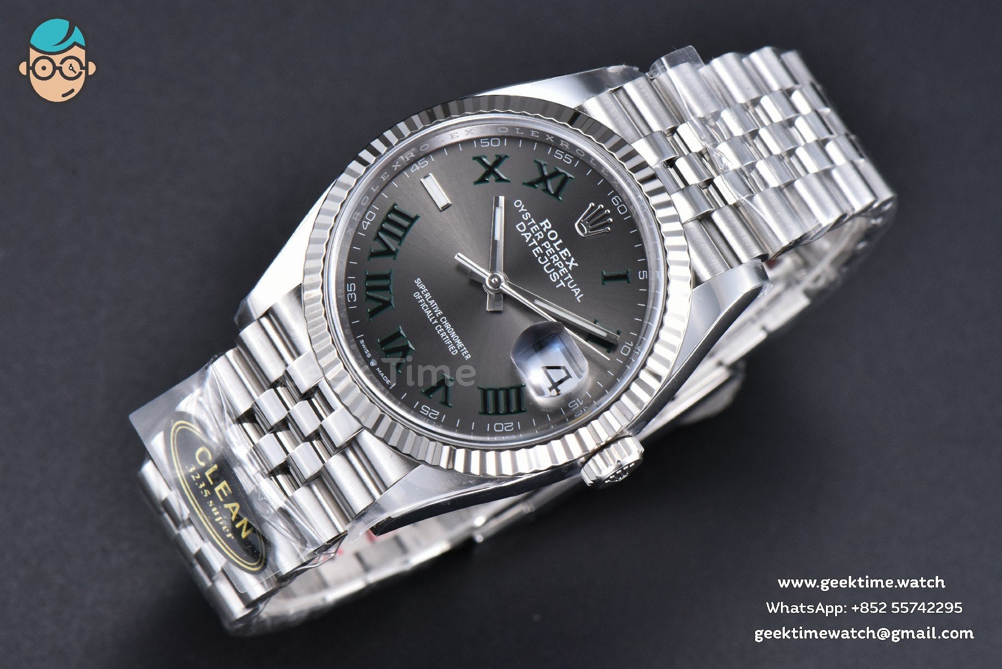 Be the first to review “DateJust 36MM 126234 Clean CF Wimbledon Gray Dial Green Marker Jubilee Bracelet VR3235”
