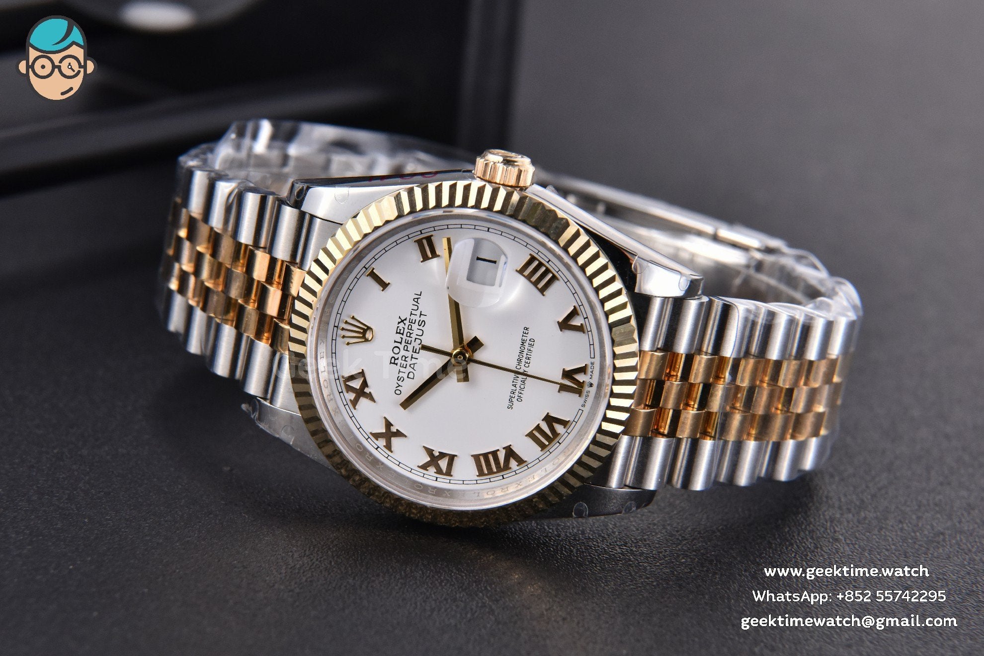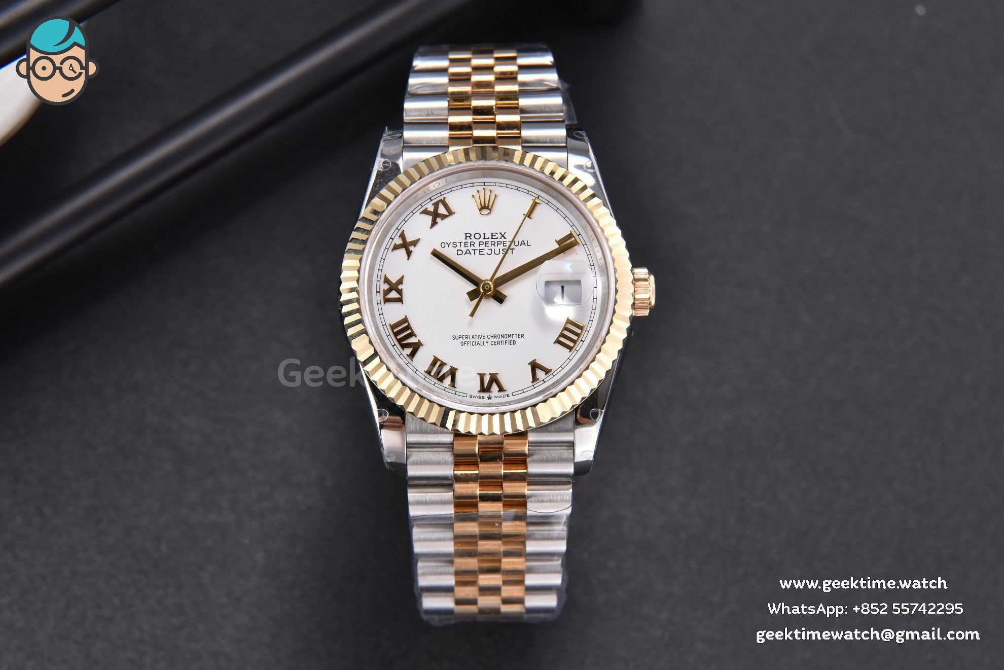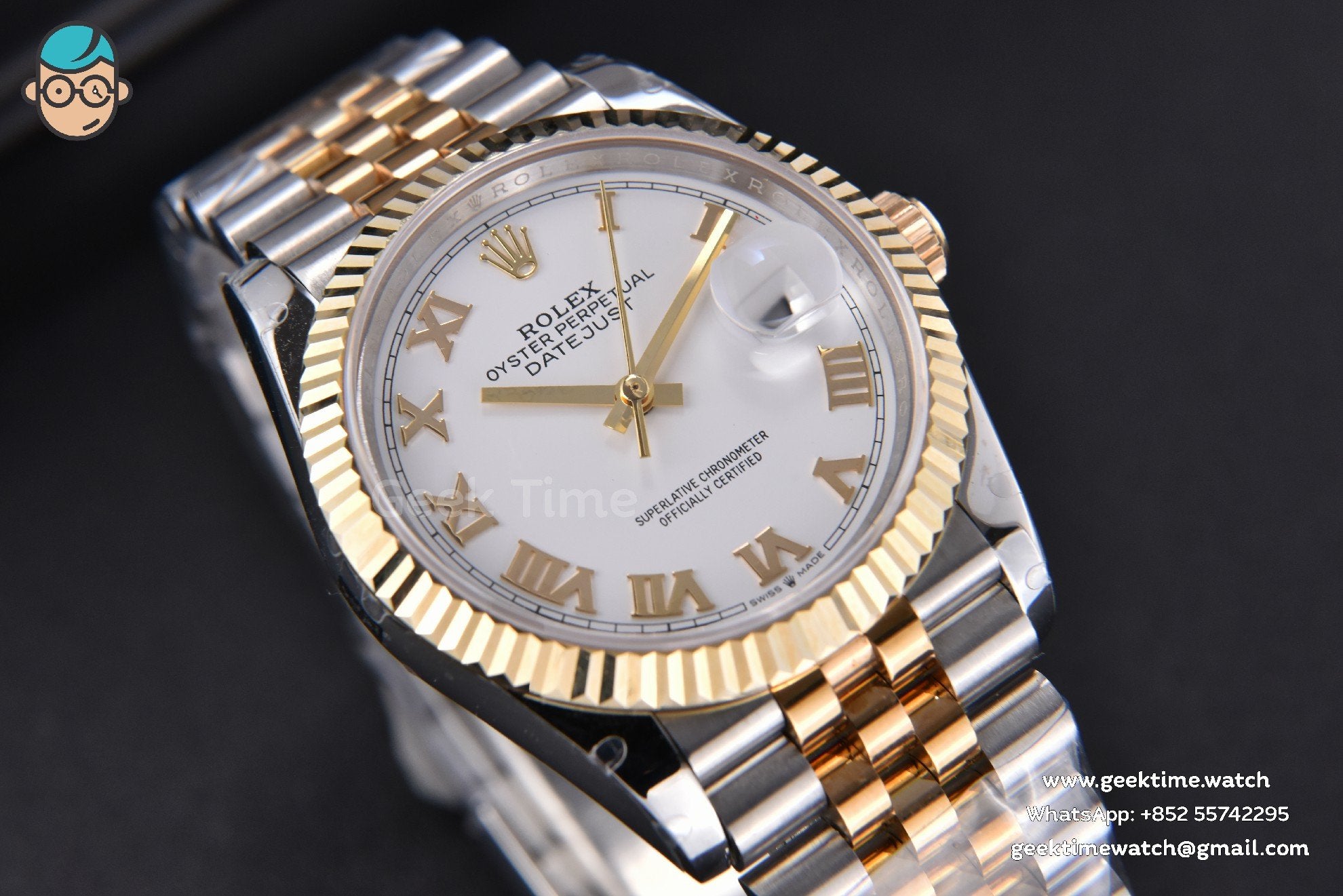 Be the first to review “DateJust 36MM 904L YG/SS GMF Fluted Bezel White Dial Roma Marker Jubilee Bracelet VR3235”