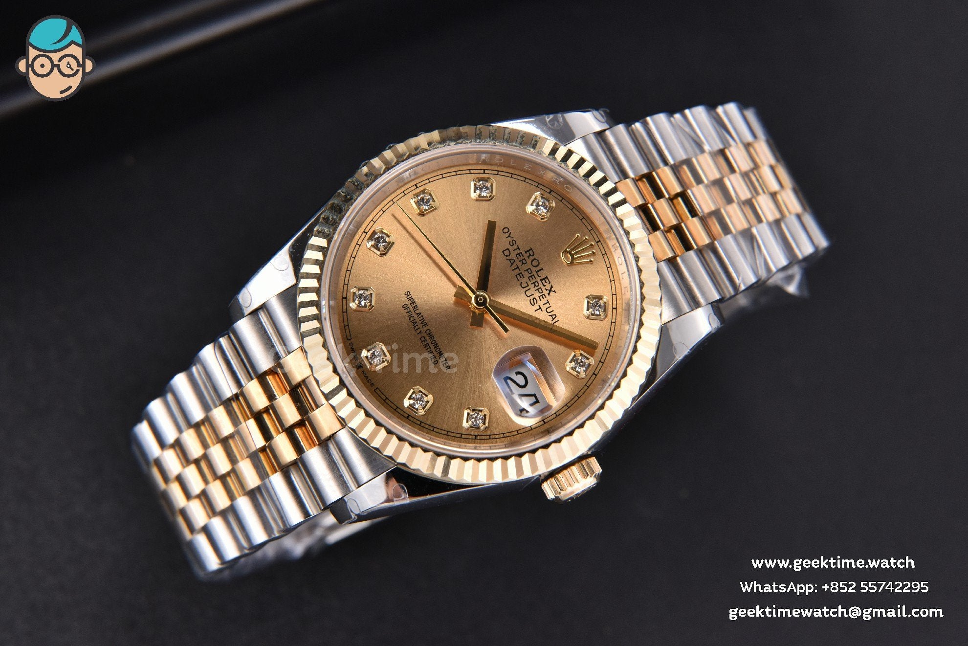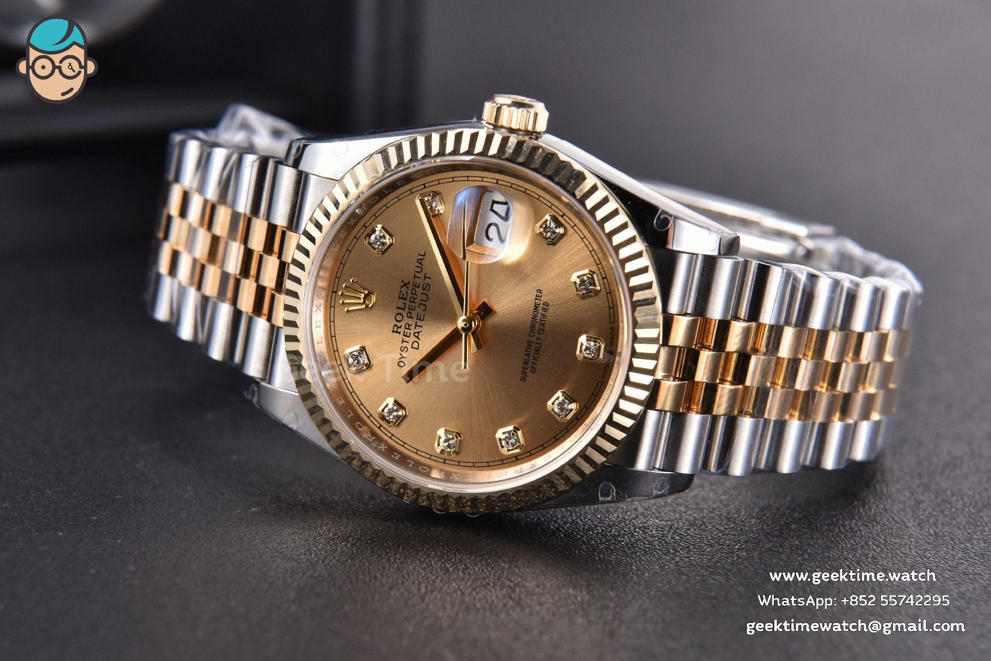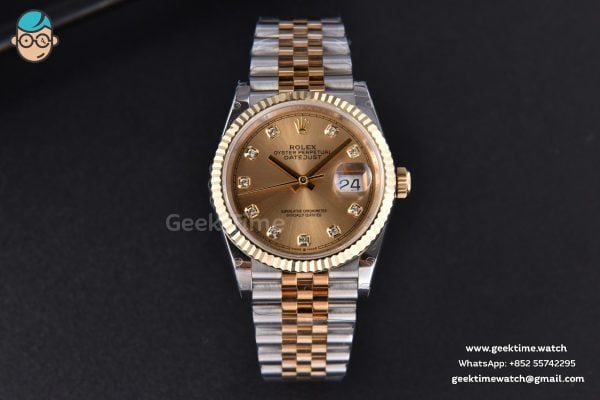 Be the first to review “DateJust 36MM 904L YG/SS GMF Fluted Bezel YG Dial Diamond Marker Jubilee Bracelet VR3235”