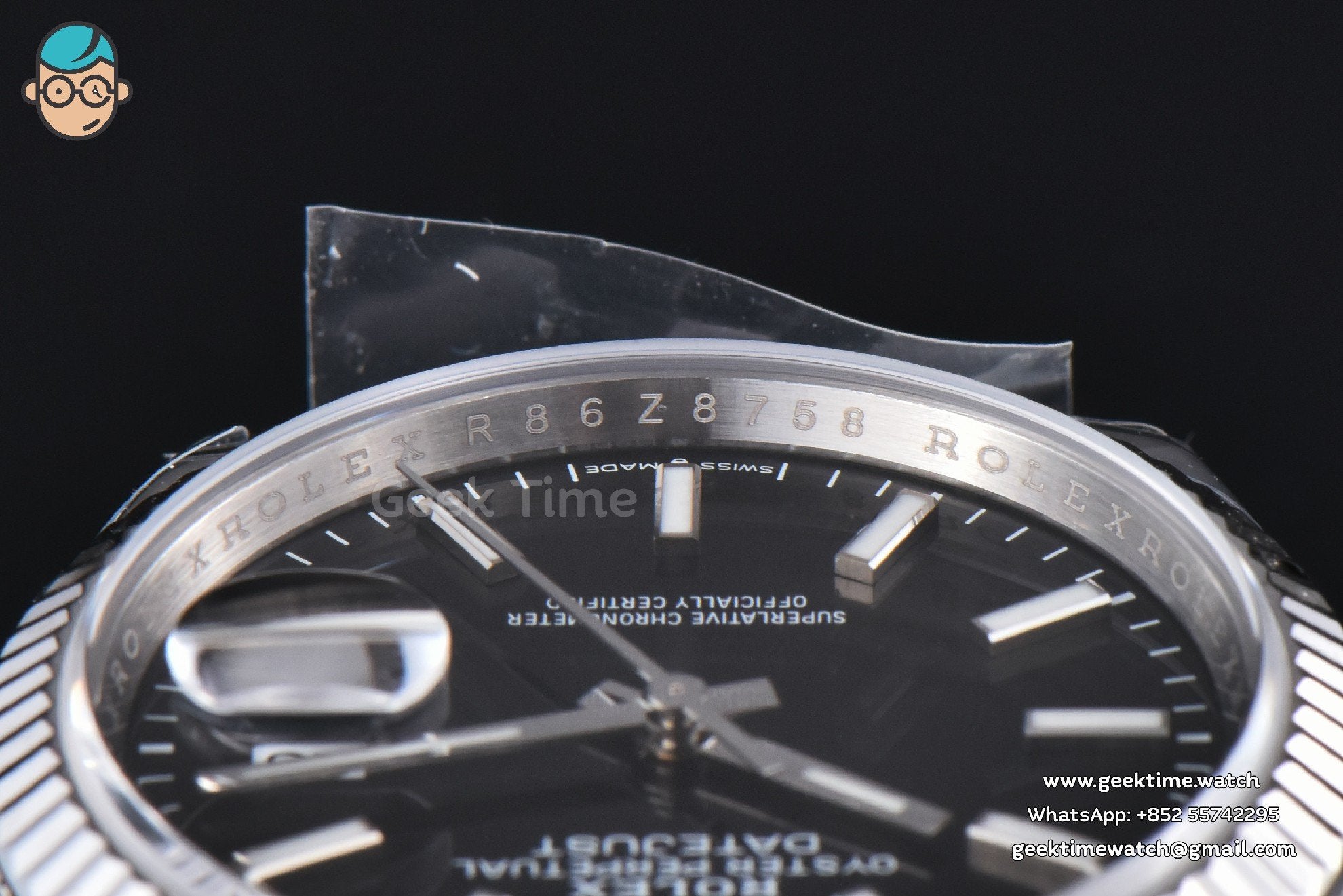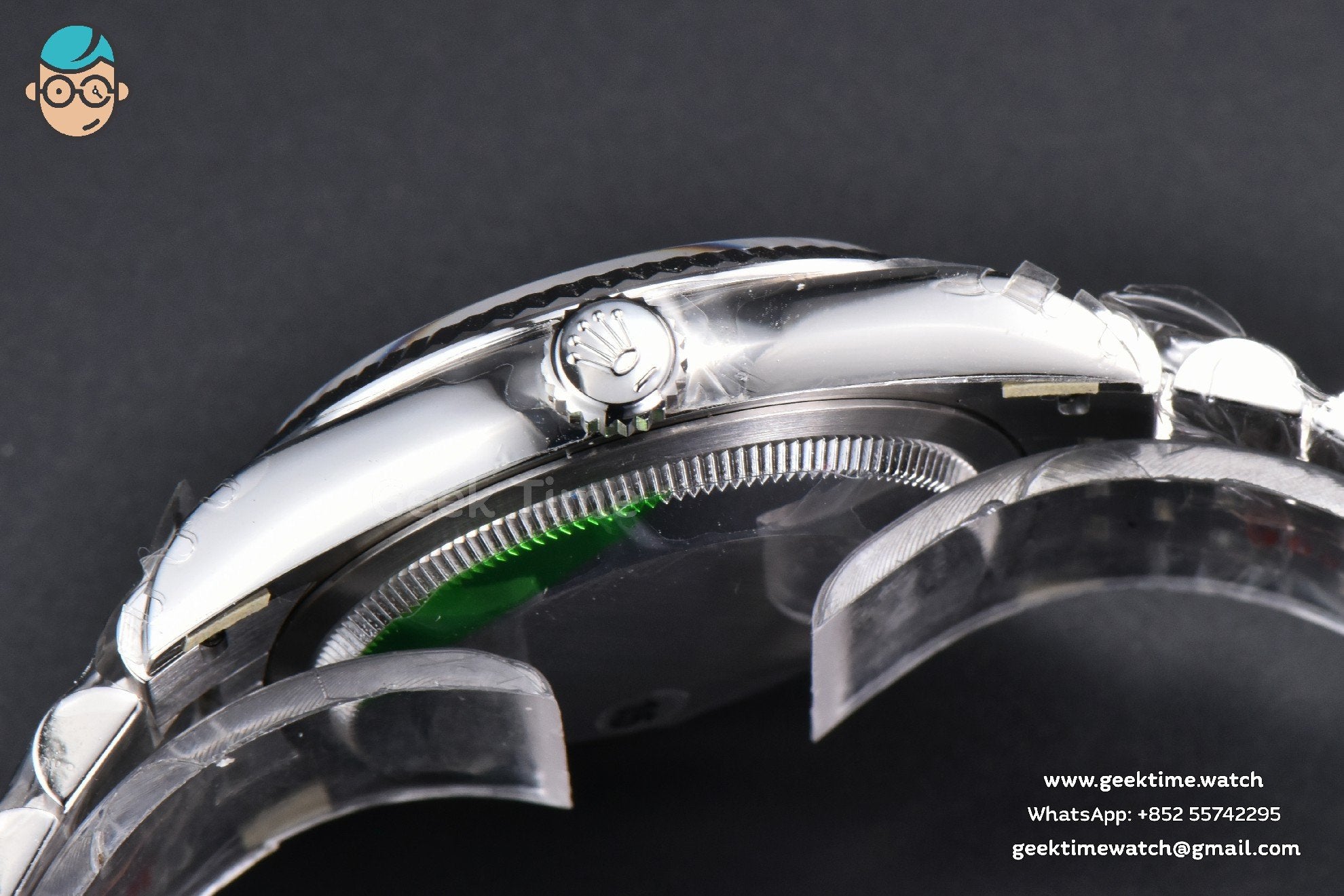 Case 1:1 high quality 904L stainless steel, screw-in back and crown, deep and double line engraved rehaut, brighter and more accurate engravings, random serial number engraved at 6:00 of the rehaut. Different random serials
