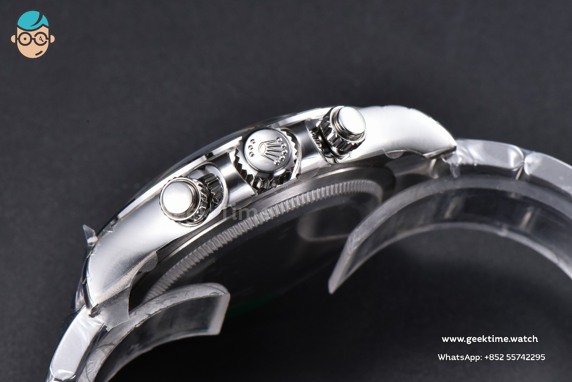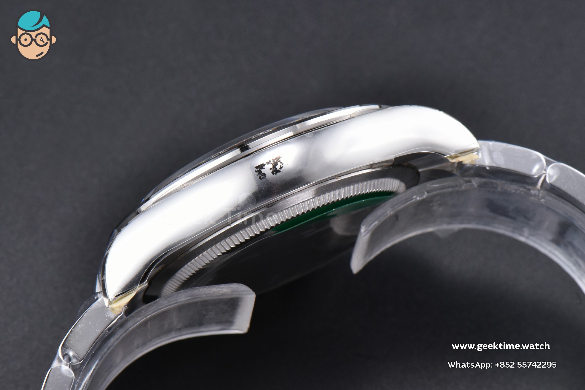 FRONT GLASS: Sapphire Crystal, Same Thickness and Height above bezel as per Genuine (Etched Rolex emblem at 6:00 on the sapphire glass)